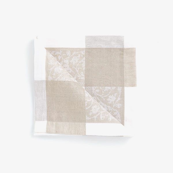 A set of four linen-blend napkins with a white and beige two-tone design and a subtle damask pattern.